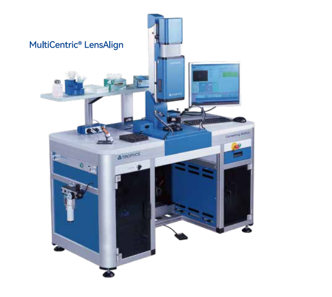 OptiCentric® LensAlign全自动光学镜片胶合系统OptiCentric® LensAlign全自动光学镜片胶合系统是专门为实现全自动镜片胶合而设计的,具有中心偏差测量、自动调节对准及自动胶合的功能。此系统基于“穿轴”原理,可在德国全欧光学(TRIOPTICS)配备空气轴承转台的中心偏差测量仪上扩展此功能。