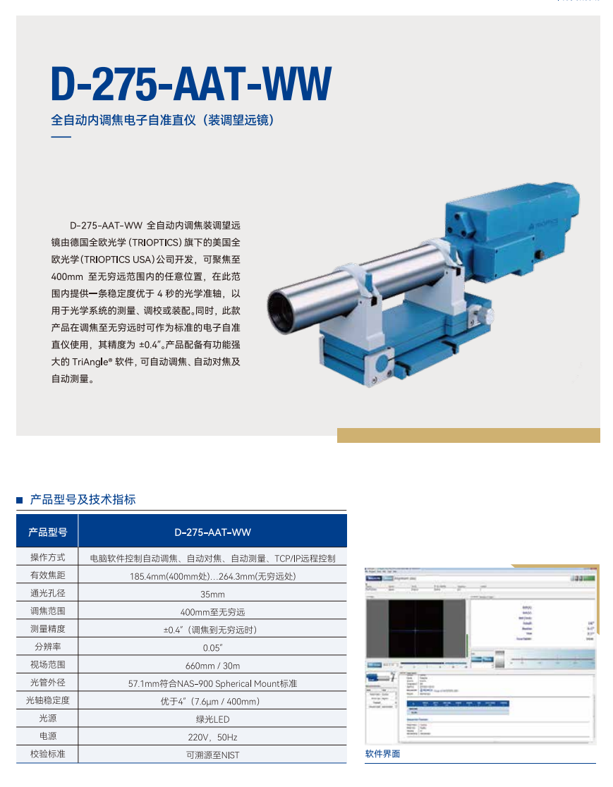 D-275-AAT-WW 全自动内调焦电子自准直仪(装调望远镜)